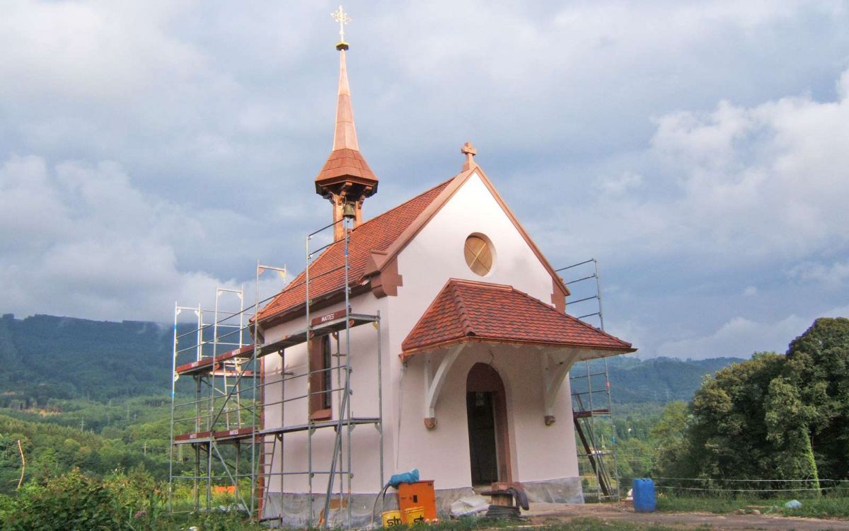 Die Sanierung der Kapelle im Enkendorf war ein besonderer Auftrag für uns. Wir durften den Turm sowie das Vordach machen.